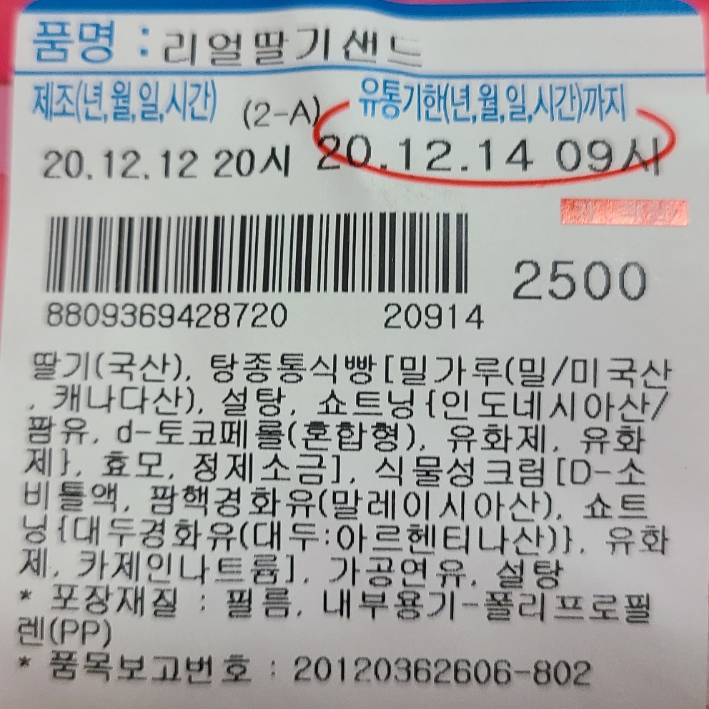 리얼딸기샌드는 가격이 2500원입니다.