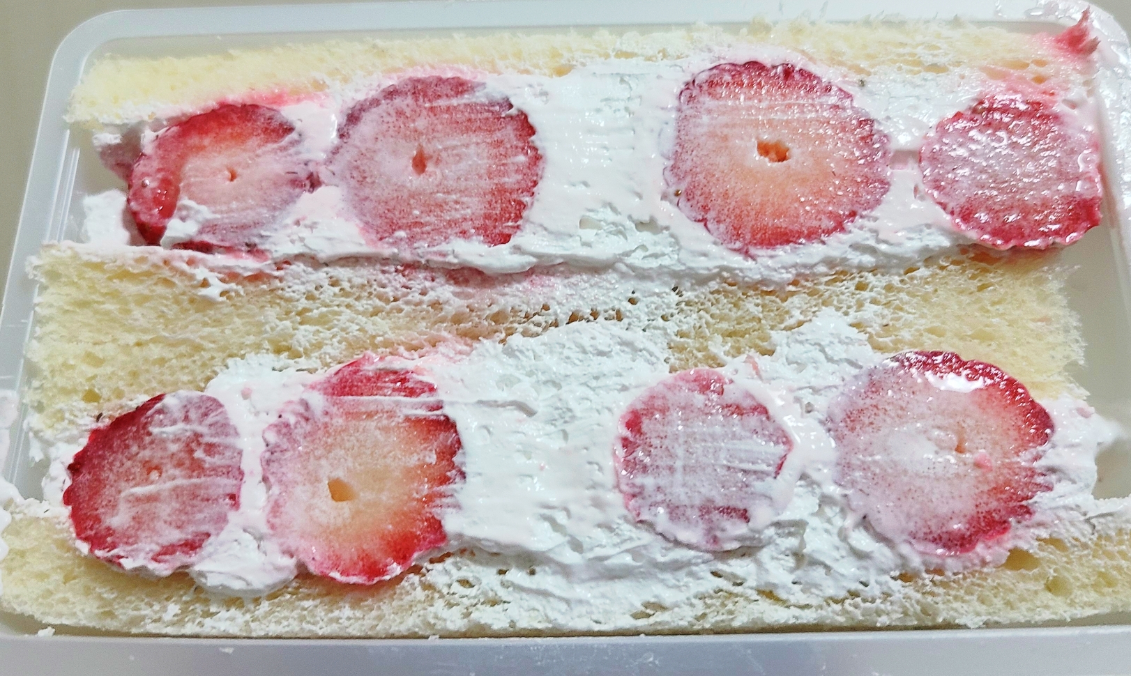 생크림과 딸기가 식빵 사이에서