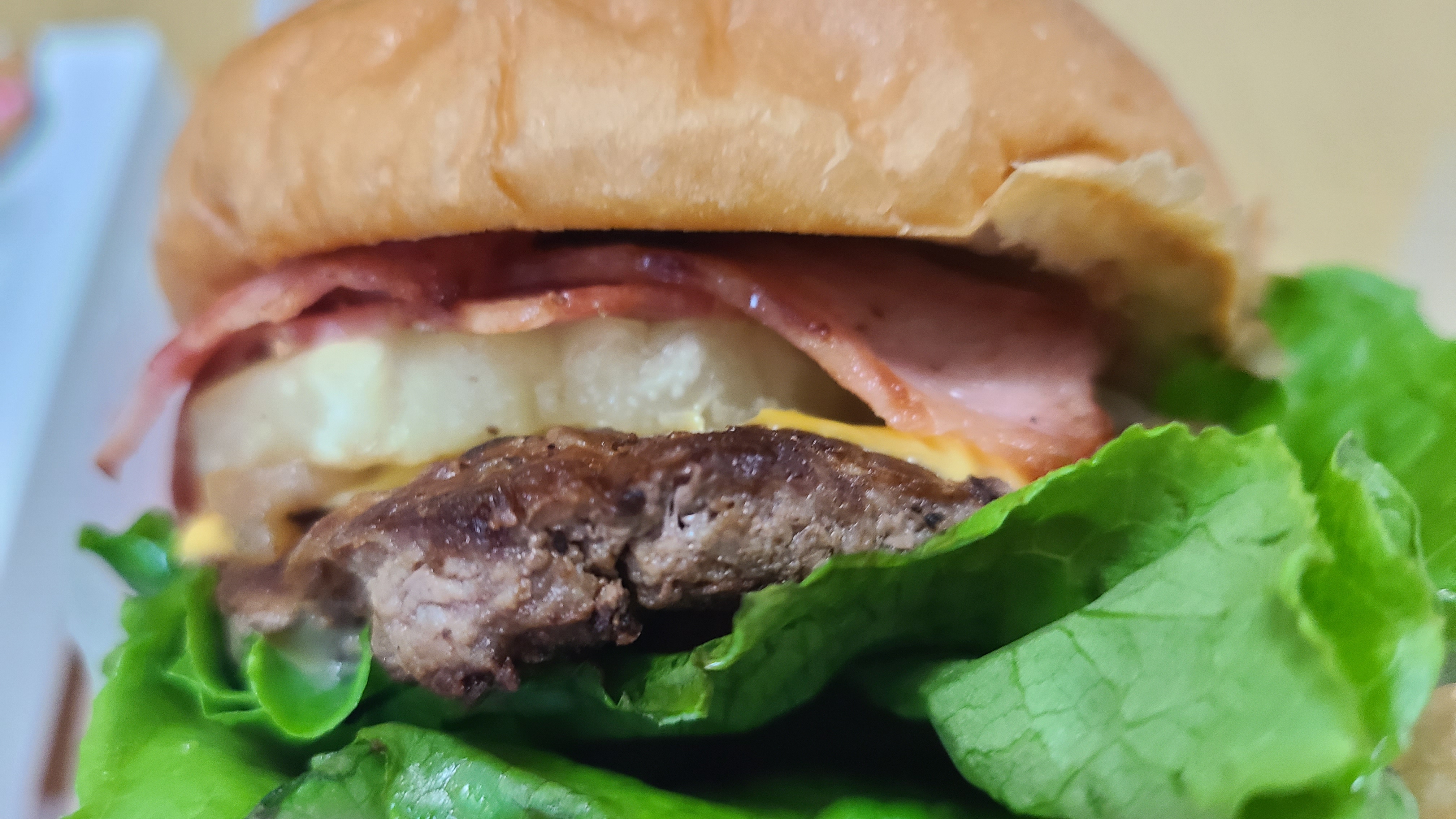 베이컨과 치즈, 고기 식감의 패티와 파인애플과 토마토, 싱싱한 로메인(?)이 든 맛있는 햄버거네요. 패티가 얇은 편인라 육즙이 확~~다가오는 편은 아니었지만 전반적으로 맛있긴 해요. 버터인지 마가린인지 향나고 폭신한 햄버거 번도 인상적임. 쉑쉑버거처럼 심하게 짜지 않아 좋지만 그렇다고 이 제품도 싱거운 버거는 아니랍니다.