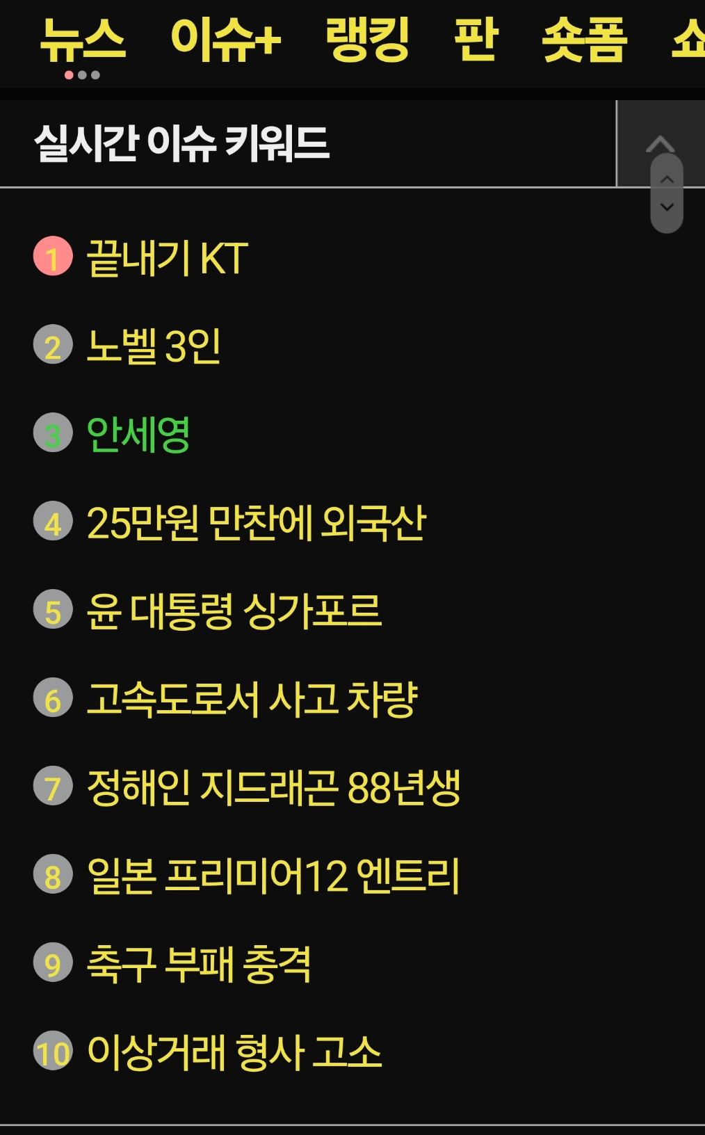 딱히 눈에 띄는 검색어가 없다는 건 조용한 하루라는 거? 큰 사건사고 없는 하루가 행복한 하루다.