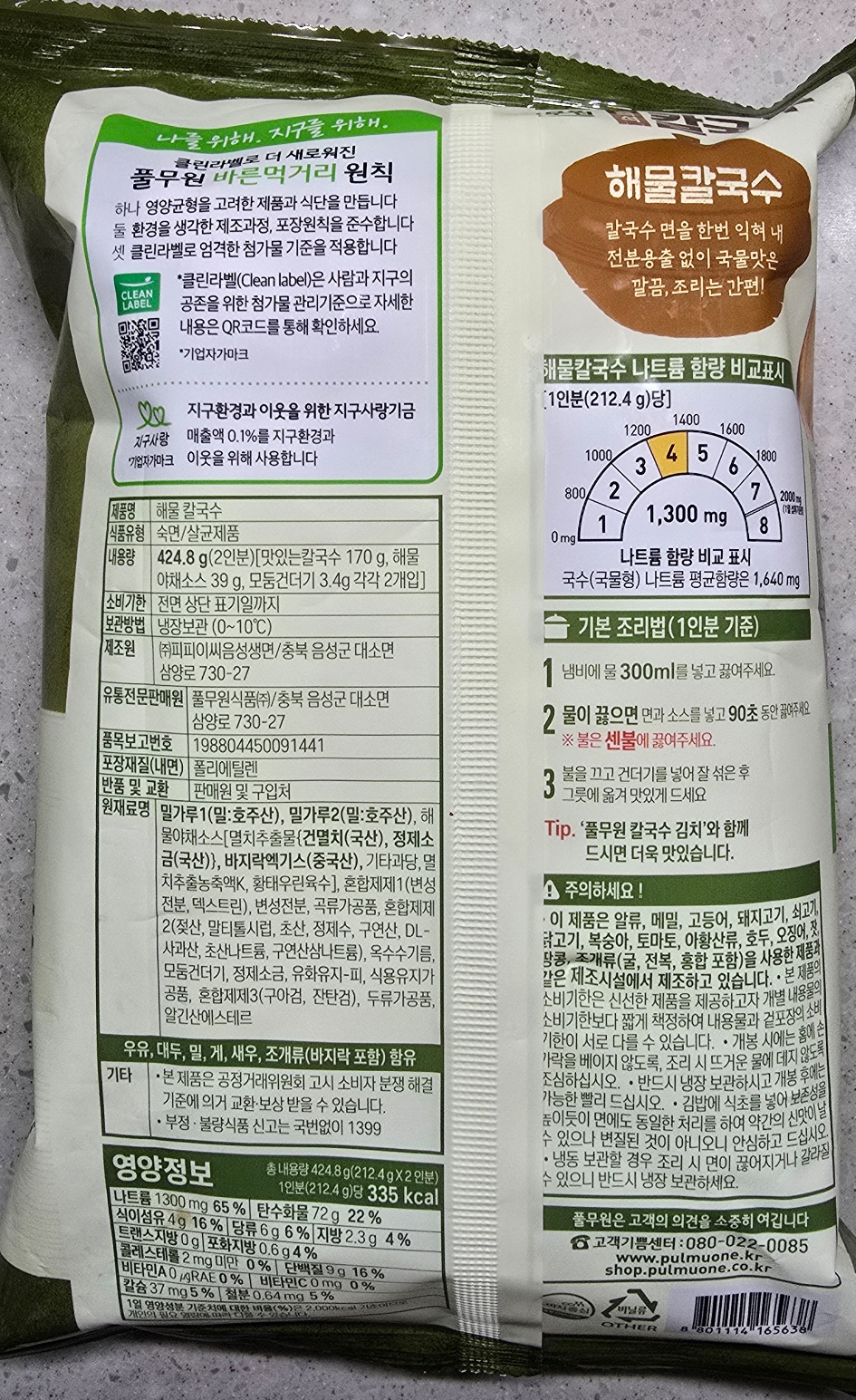 외식으로 먹는 칼국수와 짬뽕에서 나트륨이 3000mg이 넘는 곳이 많다는 신문기사를 본 적이 있고 보통 이런 라면같은 칼국수 제품도 라면 보다 나트륨이 많이 든 제품을 많이 봤는데 65%라니..정말 국물에 정성을 들였나 봐요.