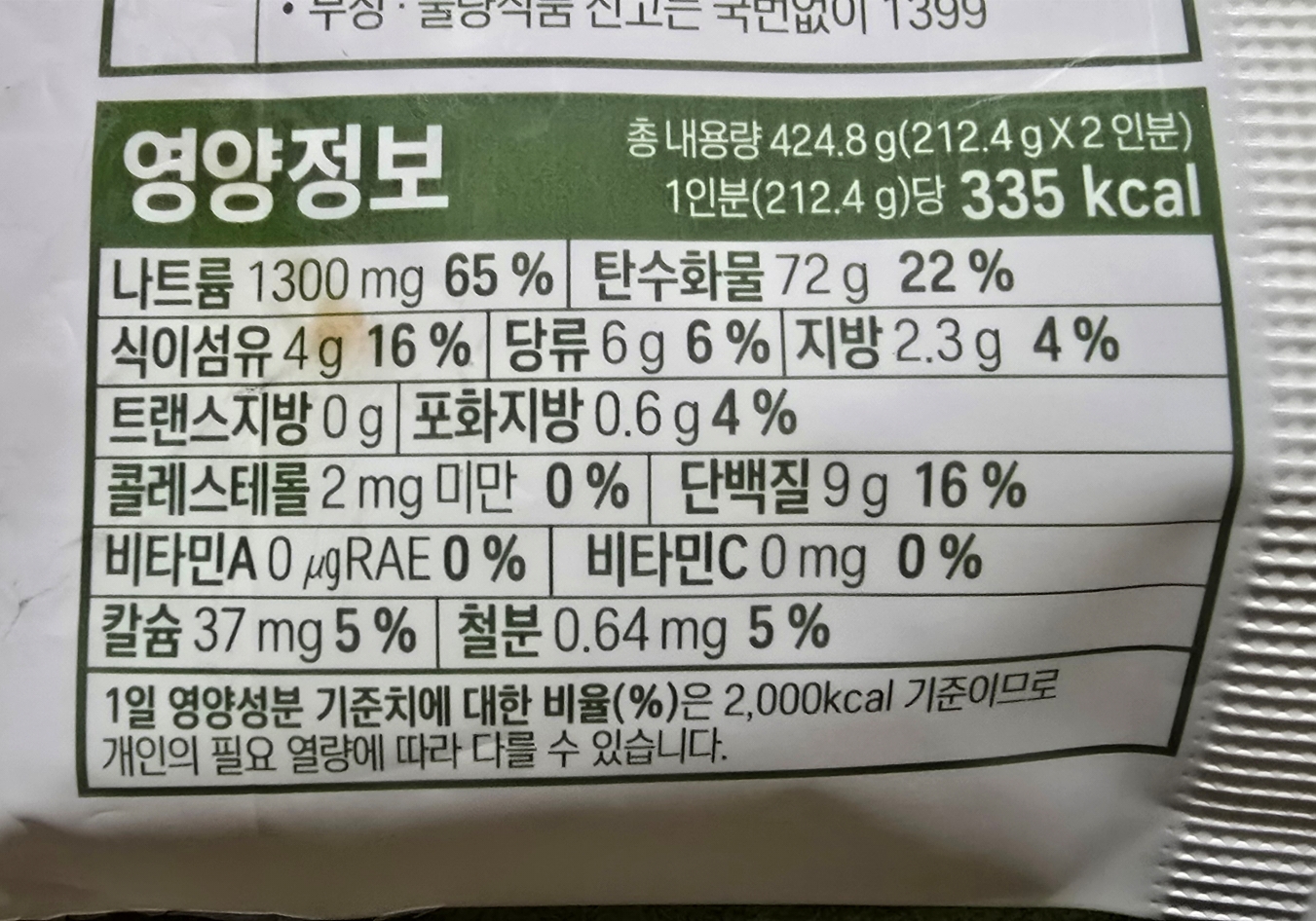 1인분 나트륨이 1300mg (65%)???? 첨에 잘못 봤나? 했어요.