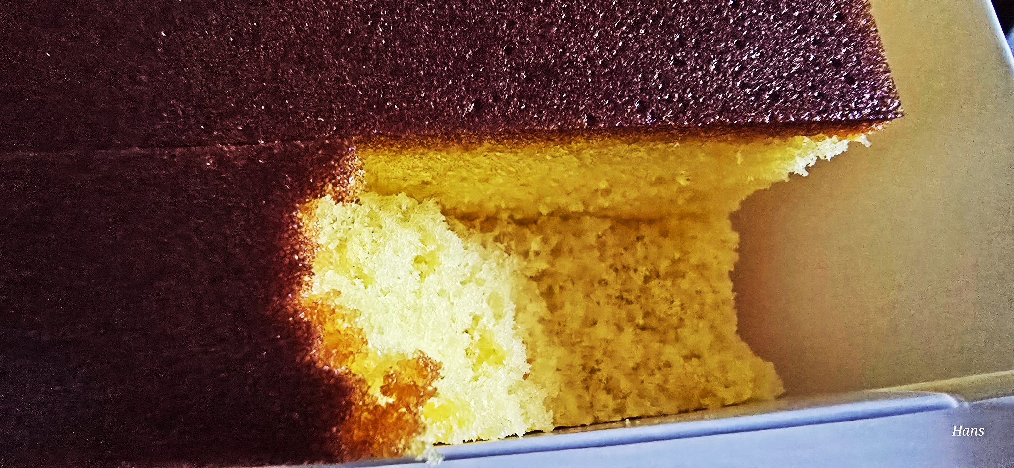 카스테라 속살을 보여드리기 위해 손가락으로 우아하게 파먹었답니다.