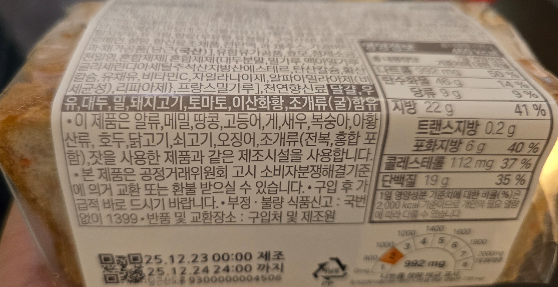 엄청 싱거운 느낌인디 나트륨이 992mg(50%)나 들었네요.