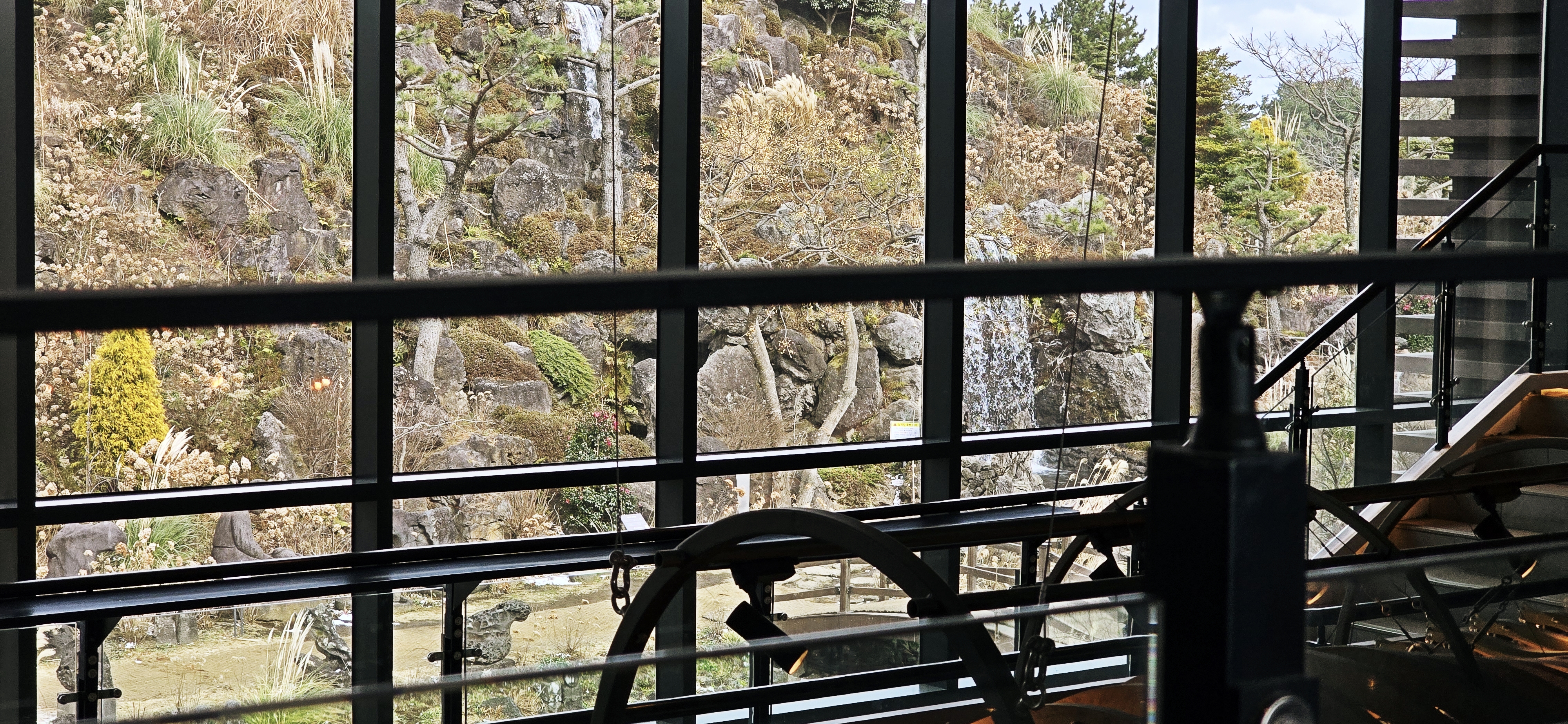 그저 창밖으로 보이는 나즈막한 동산과 폭포의 모습이 여유롭게 느껴질 뿐.