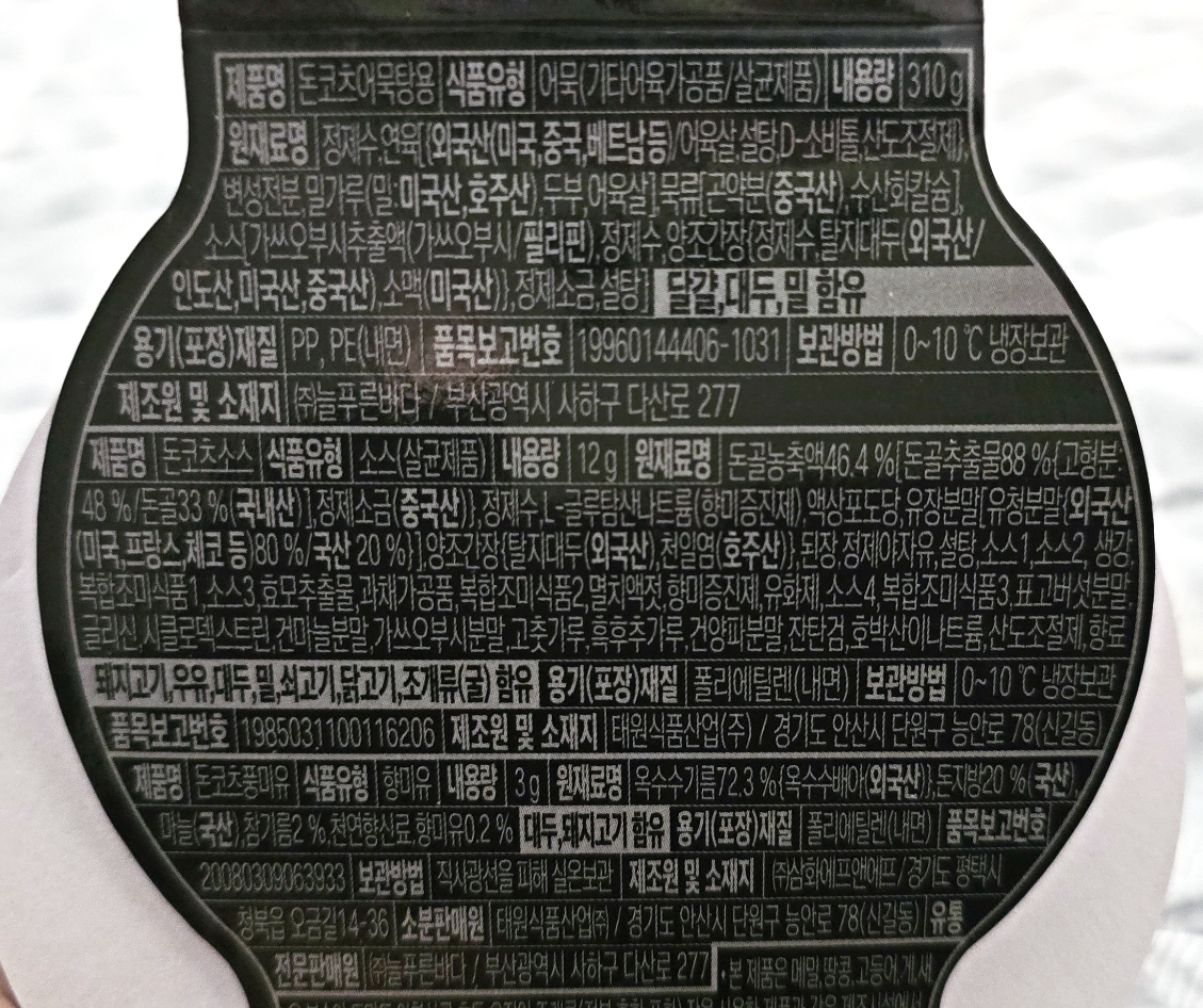 고래사 어묵탕 제조원은 (주) 늘푸른 바다.