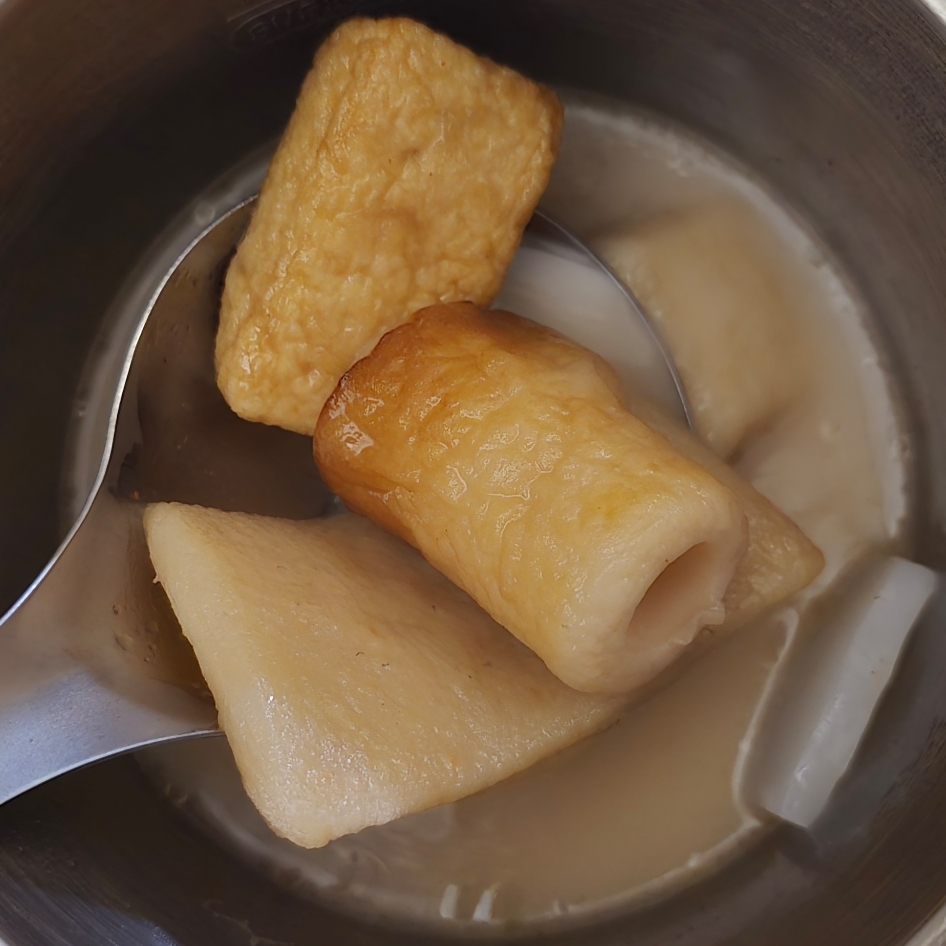 그러나 돈코츠 어묵탕인 만큼 돈코츠 소스를 투하. 전 냄비 이용.