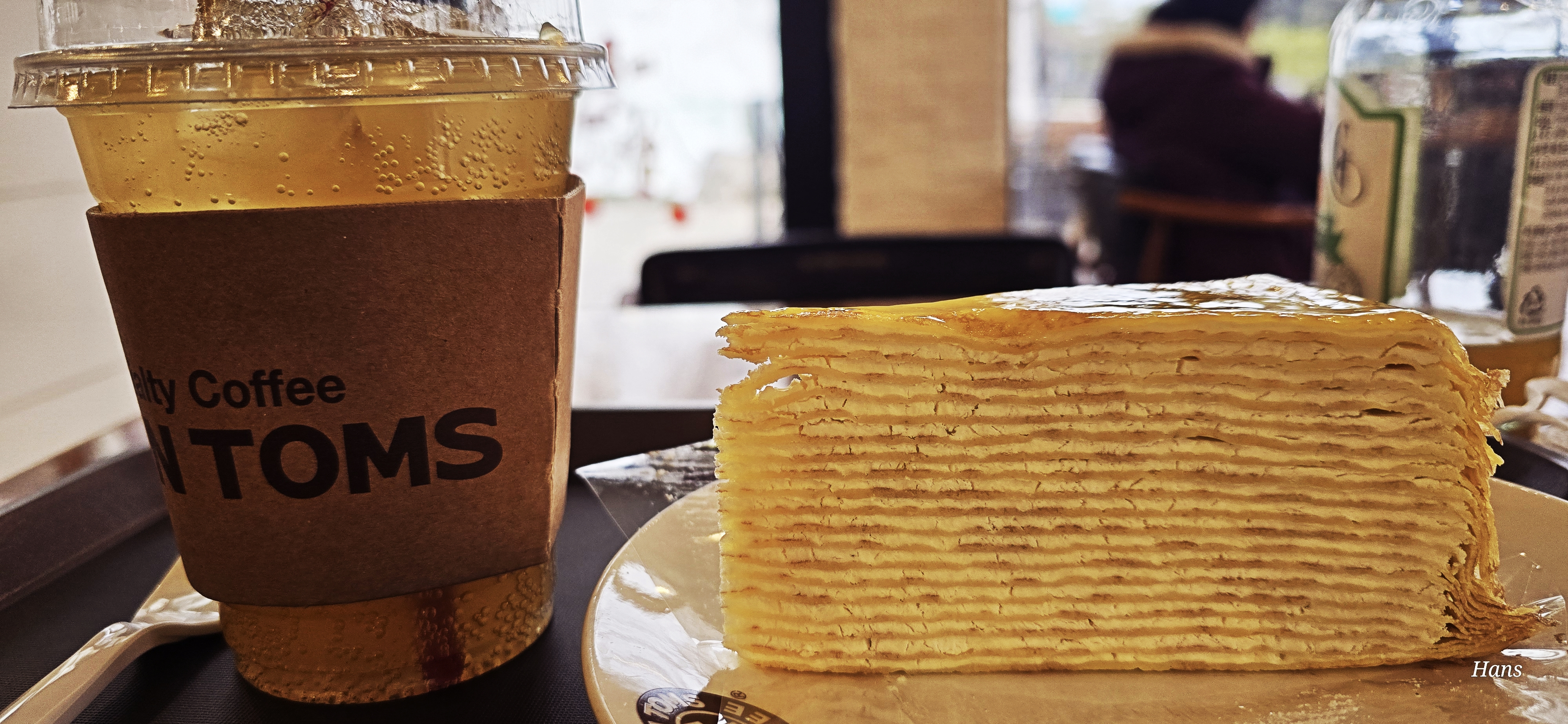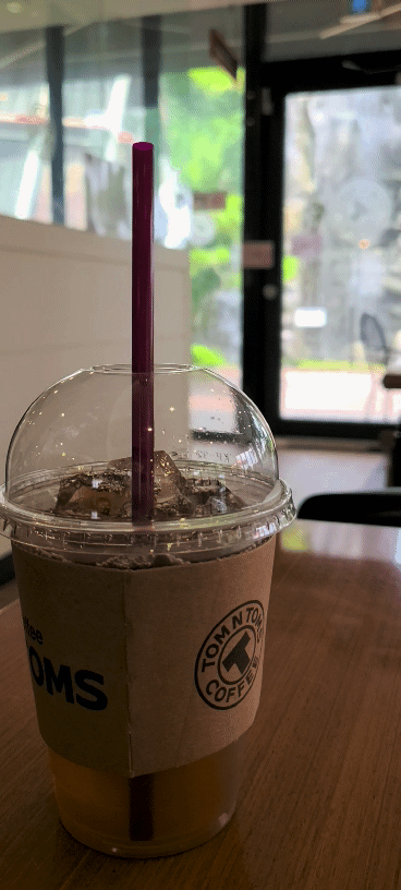 아이스음료와 크레이프 조각 케이크를 주문. 날씨가 춥다해서 단디 차려입고 나왔는데 실내 히터가 너무 빵빵해서 아이스음료를 시켰답니다.