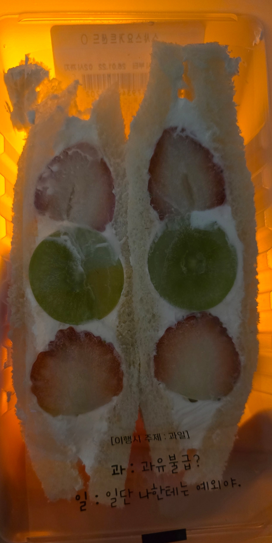 샌드위치 볼륨이나 맛 자체가 샤인머스캣 4알이 들어있던 제품과는 30% 정도 다른 것 같아요. 상향 업그레이드 버전이랄까?
