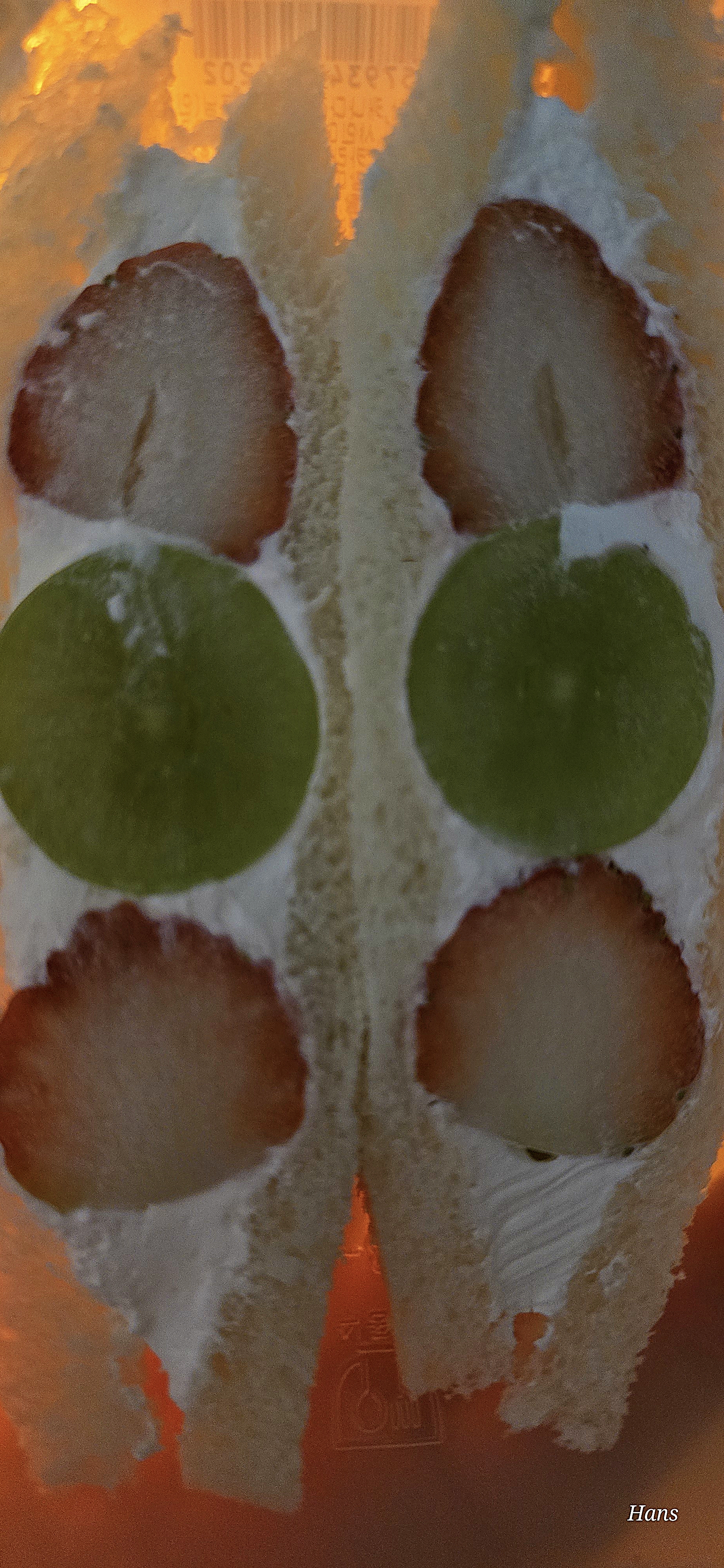 비록 식물성 크림이지만 하얀 크림을 이불 삼아 누워 있는 빨간 딸기와 그린색 포도의 모습은 이쁩니다. 이뽀!!