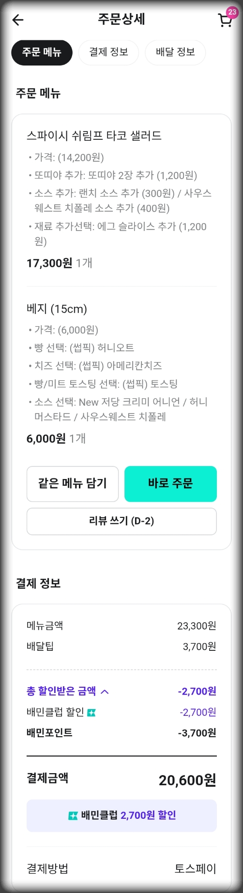 배달의 민족 비마트를 이용 시 제품 하나당 사진리뷰를 작성하면 200포인트를 주고 샌드위치 이벤트로 500점을 줘서 비마트 이용하면 포인트가 꽤 쌓입니다. 쿠폰이 없을 땐 포인트 할인이라도 챙기자고요.
