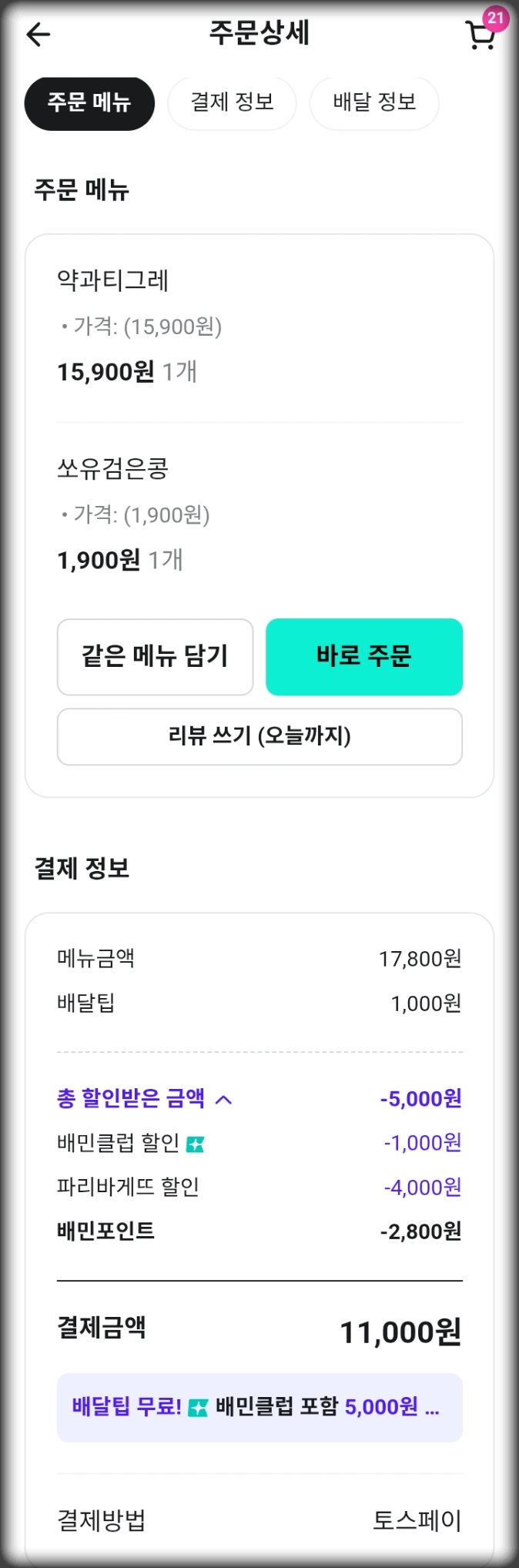 배달의 민족에서 할인쿠폰으로 꼬드겨서 꽤 오랜 기간 불매운동에 참여 중이었는데. 약과 티그레가 뭘까?란 호기심에 정조(?)를 잃고 말았습니다. 반성 중.