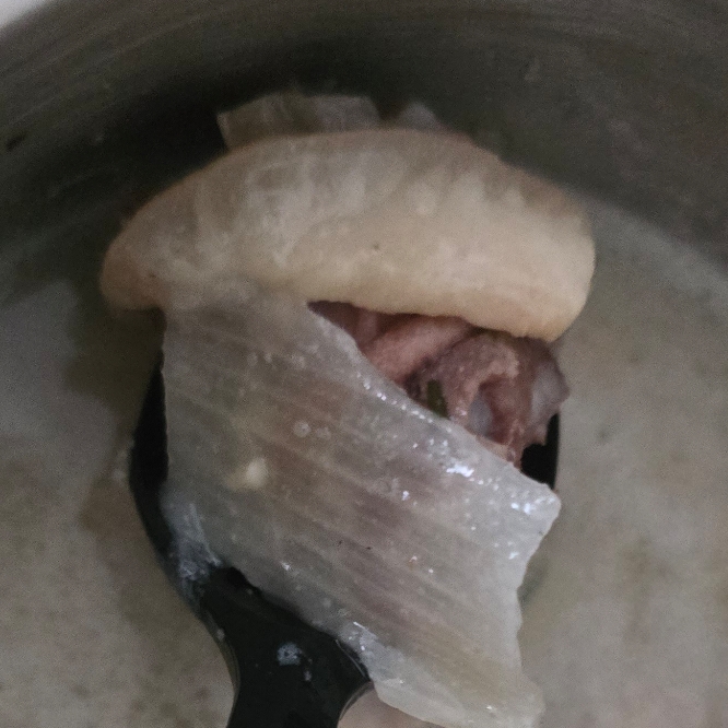 파우치에 순대국이 젤라틴화 되어 있어 포장지에 많이 붙어 있으니 수저로 긁어내주세요~♡