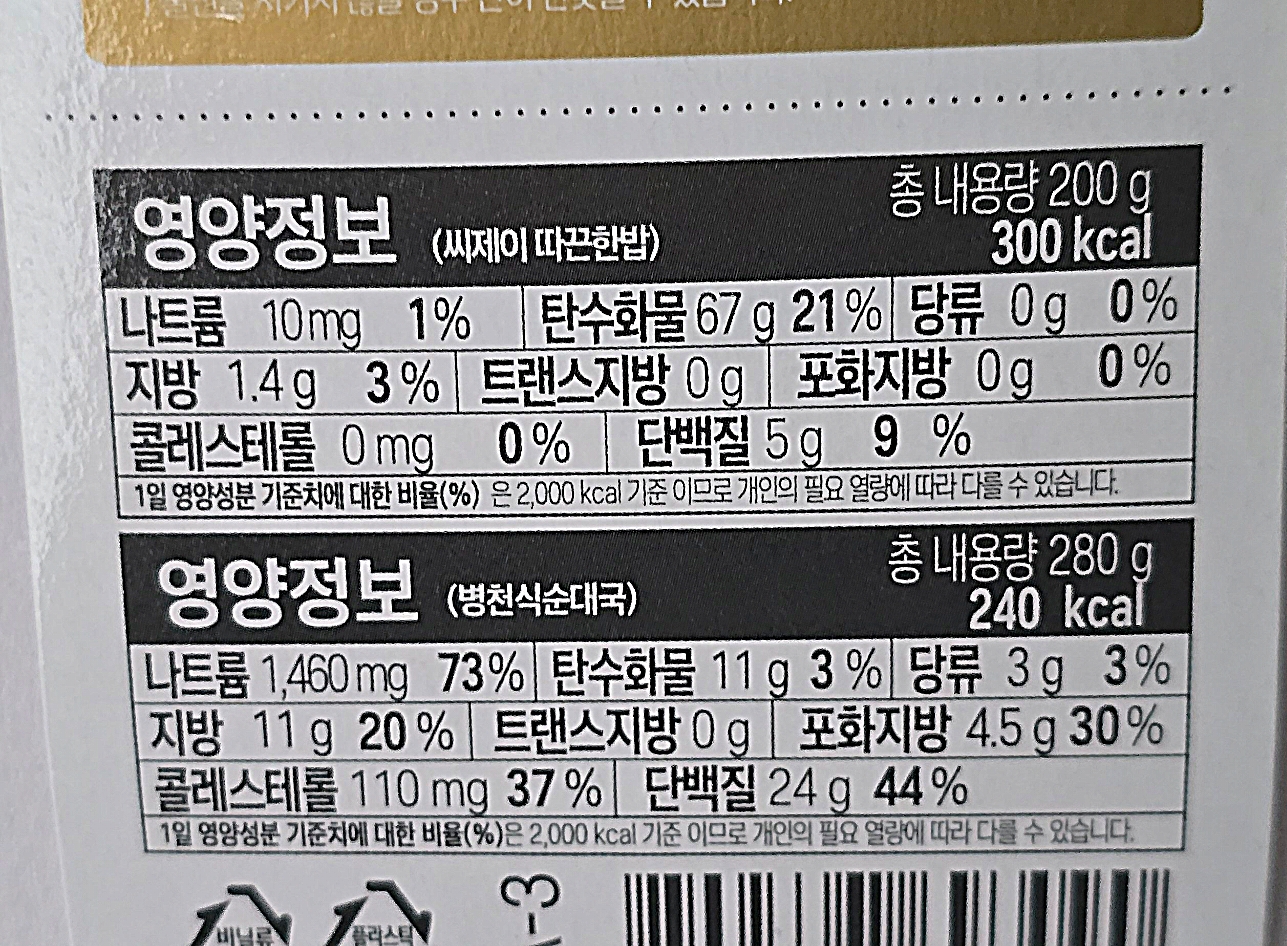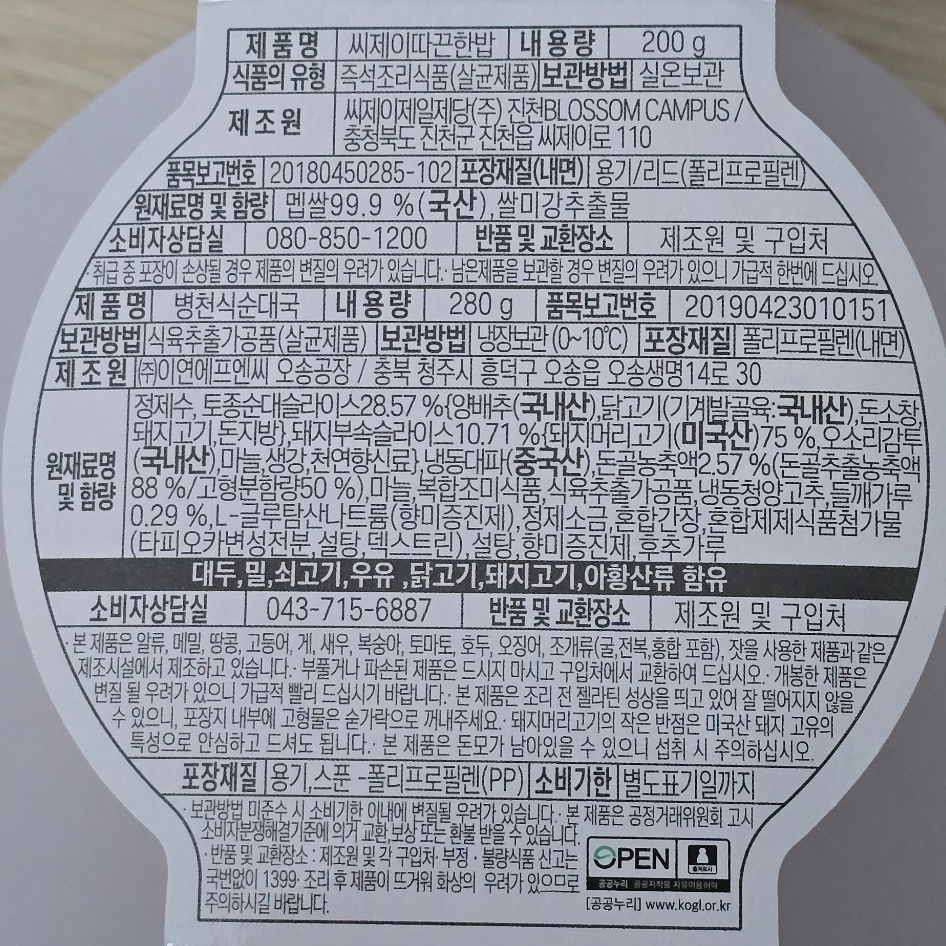비닐을 뜯고 종이 포장재를 벗기면 동그란 PP용기에 햇반 하나가 엎어져 있습니다.